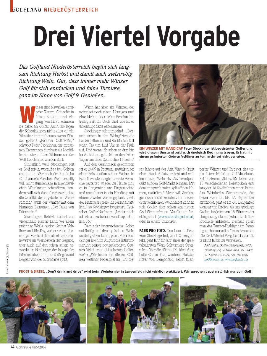Wir, eine Winzerfamilie aus der Dürnstein, haben zwei Hobbys: zum einen, die höchstmögliche Qualität aus unseren Weingärten zu gewinnen und zum anderen, wenn es die Reben erlauben, Golf zu spielen.