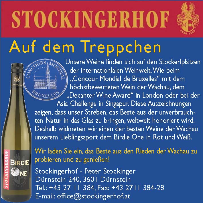 In unserem Streben nach dem Besten ist uns etwas Besonderes gelungen: Unter 30 000 Weinen aus aller Welt erreichten wir mit unserem Wein, einem Grünen Veltliner Federspiel, bei der Wine & Spirit, Asia Challenge (Singapur) den Stockerlplatz ( Bronze Medaille), ebenso ist es uns gelungen im folge Jahr ebenfalls eine Bronze Medaille in London zu erreichen – beim Decanter World Wien Award.